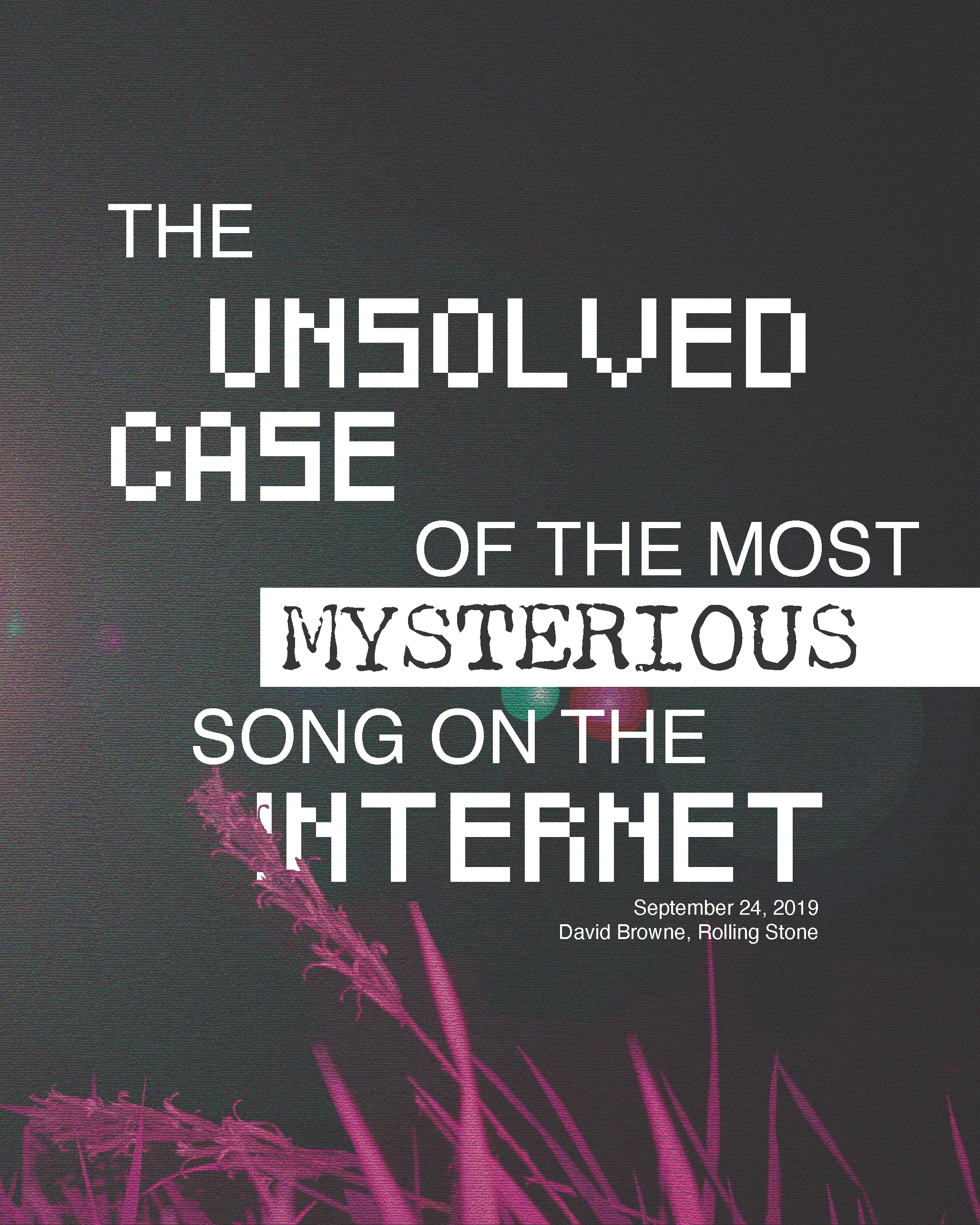 For this project, we were tasked with working as a team to create and fake magazine that followed a theme and a core audience. The magazine should also have a “flow” and be easily navigable with strong typographical layouts and strong imagery, all created by our team.
